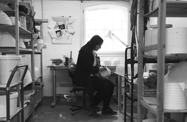 I have been designing and making ceramic lighting and tableware since 2012. I’m based on Mersea Island, off of the Essex coast. I very recently returned having lived in Denmark for the last 4 years where I worked as a studio technician in a ceramics artist and residency centre. Strongly influenced by both my own Scandinavian roots and time spent living in Denmark, my work focuses on simple form, linear patterned design and soft contrasting colours to invite a tactile approach to her products, designed to appeal to the users senses.